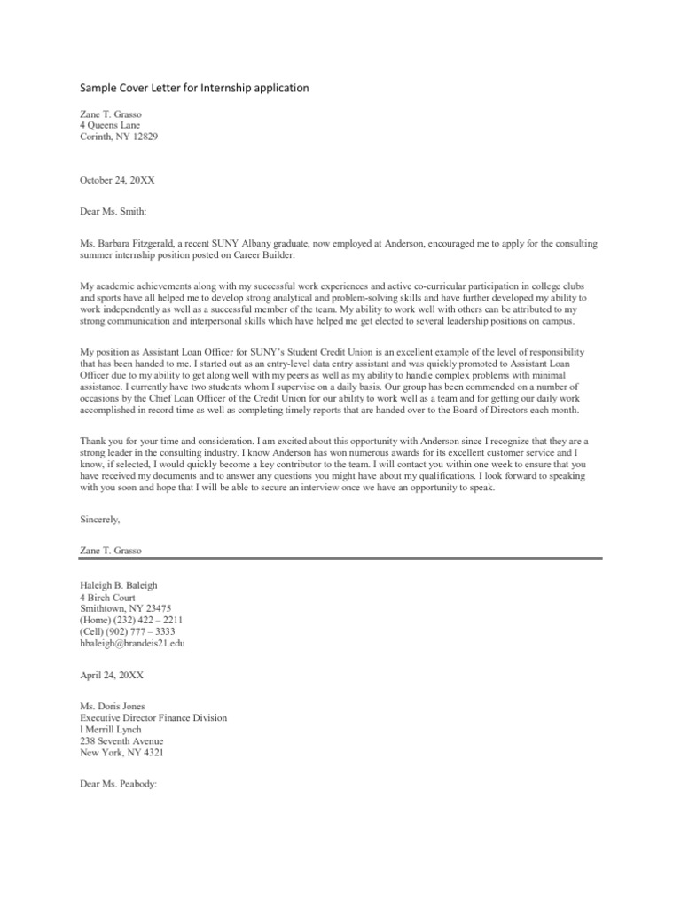 Writing a cover letter for a job you have no experience for might be difficult for few people but believe me guys it's not that difficult. My name is eileen ninja. The best covering letter layout. Pay attention to the internship description: When applying for an internship, employers might request a cover letter along with your resume, references and other required documents. Thank them, and let them know you have submitted your resume and cover letter. Remember never to start off with to whom it may concern!) dear hiring manager, i am excited to submit my application for the product management internship at bpm tech. Windsor locks, ct, united states. Cover letter sample for internship (word version) Internship plays a very important role in a student's life if ever he has opted it. Trade assistant cover letter example. Last week i was working as a student volunteer at the dowd county chamber of commerce event alongside your vp or hr, collin williams. As the name indicates, this cover letter can be used by a student to apply for an internship with a firm.